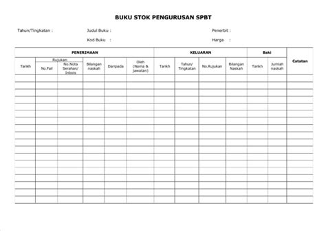 Borang Pengurusan Stok Buku Teks Btbtr 190 Dan Buku Stok Menghantar.